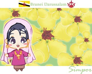 ดอกไม้ประจำชาติบรูไน ก็คือ ดอกซิมปอร์ (Simpor) หรือที่รู้จักกันในชื่อ ดอกส้านชะวา (Dillenia) ดอกไม้ประจำท้องถิ่นบรูไน ที่มีกลีบขนาดใหญ่สีเหลือง หากบานเต็มที่แล้วกลีบดอกจะมีลักษณะคล้ายร่ม พบเห็นได้ตามแม่น้ำทั่วไปของบรูไน มีสรรพคุณช่วยรักษาบาดแผล หากใครแวะไปเยือนบรูไน จะพบเห็นได้จากธนบัตรใบละ 1 ดอลลาร์ ของประเทศบรูไน และในงานศิลปะพื้นเมืองอีกด้วย