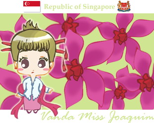 ประเทศสิงคโปร์ มี ดอกกล้วยไม้แวนด้า (Vanda Miss Joaquim) เป็นดอกไม้ประจำชาติ โดยดอกกล้วยไม้แวนด้าตั้งชื่อตามผู้ผสมพันธุ์ คือ Miss Agnes Joaquim จัดเป็นดอกกล้วยไม้ที่เป็นที่รู้จักมากที่สุดในประเทศสิงคโปร์ มีสีม่วงสดสวยงามและเบ่งบานอยู่ตลอดทั้งปี โดยถูกจัดให้เป็นดอกไม้ประจำชาติสิงคโปร์ตั้งแต่ปี ค.ศ.1981 (พ.ศ.2524)