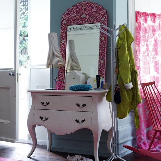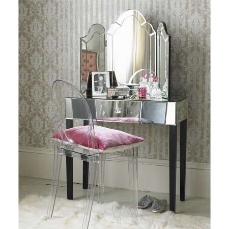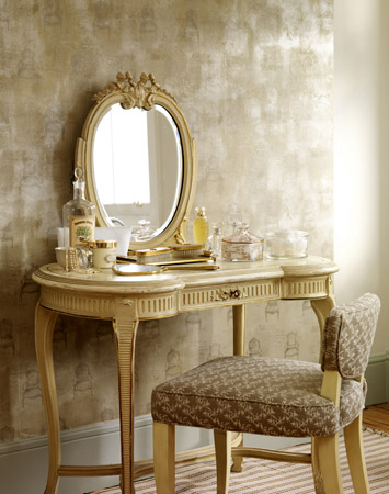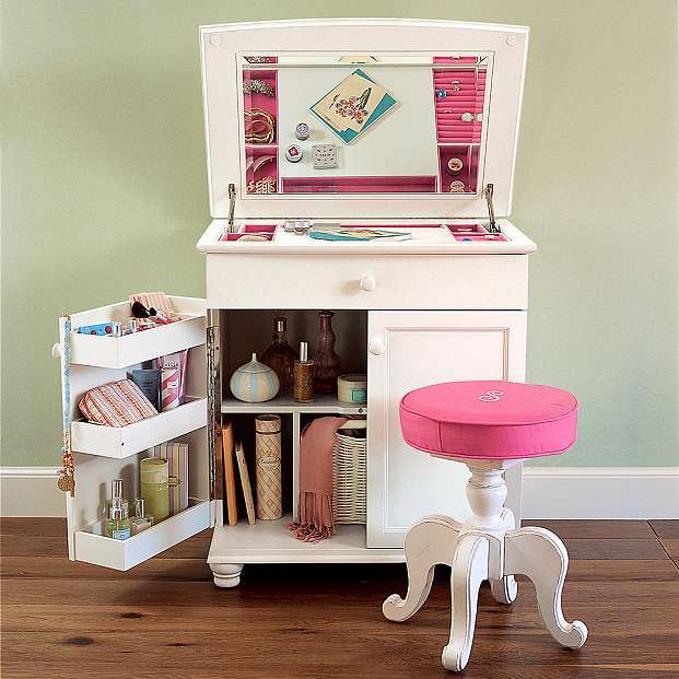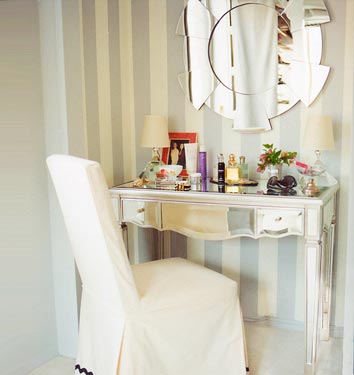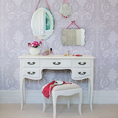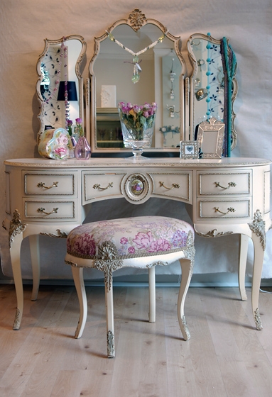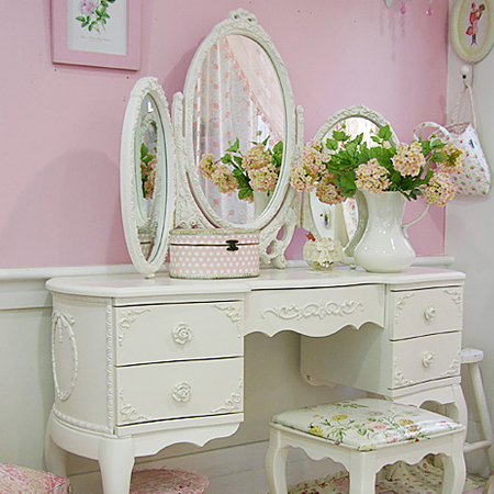 โต๊ะเครื่องแป้ง เป็นเฟอร์นิเจอร์ประจำห้องแต่งตัวอีกชิ้นหนึ่งที่ผู้หญิงอย่างเราจำเป็นต้องมี ยิ่งถ้าคุณเป็นสาวที่รักสวยรักงามชอบการแต่งหน้าแล้วหล่ะก็ โต๊ะเครื่องแป้ง คือ เอสเซสซอรี่สำคัญอีกชิ้นหนึ่งเลยทีเดียว และเราก็ยังต้องการโต๊ะเครื่องแป้งที่สวยงาม น่ารัก น่าใช้ซะด้วยสิ Shine On (ไชน-ออน) ขอเอาใจสาวๆ ด้วยแบบโต๊ะเครื่องแป้งสวยๆ สไตล์เจ้าหญิง และนอกจากจะมีแบบโต๊ะเครื่องแป้งสวยๆ ให้ดูกันแล้ว ยังมีไอเดียในการตกแต่งโต๊ะเครื่องแป้งเพิ่มเติม ด้วยพร็อบต่างๆ ที่นำมาประดับโต๊ะอย่าง โคมไฟ แจกันดอกไม้่ กรอบรูป นาฬิกา โทรศัพท์ เชิงเทียน จะช่วยเสริมบรรยากาศแบบเจ้าหญิ้ง เจ้าหญิง ให้คุณสาวๆ ได้ดีทีเดียว…รับรองว่าสาวๆ จะต้องชื่นชอบกับโต๊ะเครื่องแป้งสไตล์นี้แน่นอนค่ะ